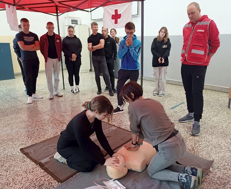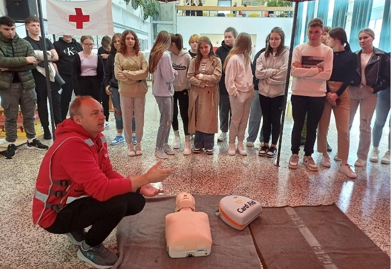 Ukupno 53 učenika sudjelovalo je u edukaciji pružanja vanjske reanimacije i korištenja školskim automatskim defibrilatorom (AVD). Veoma zorno i jezgrovito edukaciju je održao je specijalist Hitne medicine Marko Vlajnić, naš dugogodišnji suradnik, djelatnik Hrvatskog zavoda za hitnu medicinu VPŽ– ispostava Slatina.