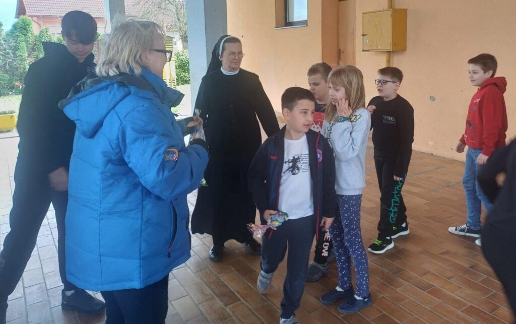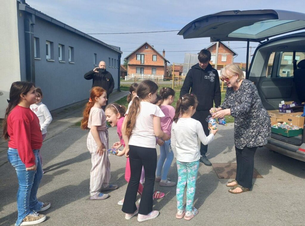 Također su obradovali i učenike u područnoj školi u Ivanovcima kraj Valpova i djecu s poteškoćama u razvoju u slatinskim školama, kao i odrasle korisnike udruge JAGLAC u Orahovici. Ukupno je podijeljeno oko 1.400 prigodnih poklona. U nekim školama učenici su izveli male predstave kao znak zahvalnosti donatorima. Ravnateljice škola i njihove kuharice bile su susretljive prema nama gladnim namjernicima. Kao i uvijek svojom toplom gostoljubljivošću primila ih je obitelj Ante Škrobića iz Mačkovca sa suprugom Lucom i kćerkom Ivanom.